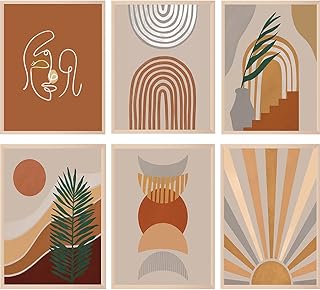 Boho Prints Wall Poster Mid Century Modern Art Earth Tones Kunstdrucke Abstrakte Kunstdrucke in 6 Stilen Bohemian Art Poster Minimalist für Home Bedroom Office (Ungerahmt 20x25cm)