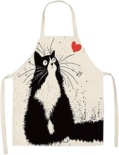 SicoVision Küchenschürze mit Katzen-Motiv, ärmellos, Baumwolle, Leinen, lustige Schürze, für Damen, Herren, Zuhause, Küche, Accessoires, 50 x 68 cm, Leinen baumwolle, Type-2