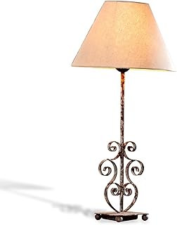 Loberon Tischlampe Clamart, Eisen, Baumwolle, Polyester, H/Ø 56/26 cm, rostbraun/leinen, E27, max. 60 Watt, A++ bis E, leinen/antikbraun