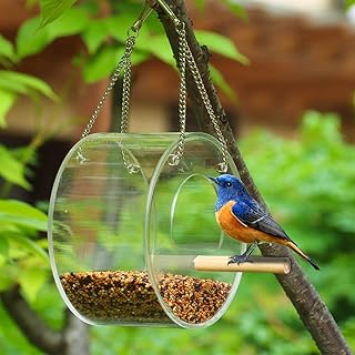 Maxjaa wild Bird Feeder acrylklarsichtfenster Bird Feeder Round halb geschlossen vogelfutterstation Hanging-typ Fenster voliere mit metallkette für Outdoor-Porch BALC