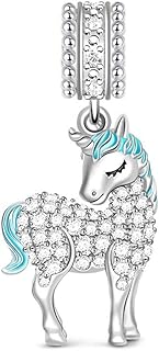 925 Silber Damen Charms Anhänger Einhorn Blau Perlen Passend für Halskette und Armbänder Göttliche Seele und Geist Schmuck Set Geschenk für Mädchen Schwester Kinder