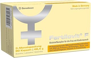 Fertilovit F35plus is available in 2 pack sizes: 30 capsules for 30 days. 90 capsules for 90 days. Shipping in neutral outer packaging. Package insert: Here you can download the package insert. A000025 Package size Language - + Description 24.90 € - 30 capsules for 30 days 59.00 € - 90 capsules for 90 days Further products Fertilovit® F PCOS Reason for choosing Fertilovit® F 35 plus. Fertilovit® F 35 plus is vegetarian, gluten-free and lactose-free; Fertilovit® F 35 plus is optimal concomitant supplementation during fertility treatment; 800 μg folic acid and coenzyme Q10 in combination with a comprehensive supply of precious vitamins and minerals;