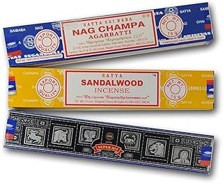 3er-Set Aroma Räucherstäbchen | Satya SuperHit + Nag Champa + Sandelholz | Natürliche Aromatherapie Räucherstäbchen | 3 Packungen à 15 g