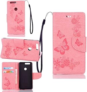 pinlu Schutzhülle Für Huawei Honor 8 Handyhülle Hohe Qualität PU Ledertasche Brieftasche Mit Stand Function Innenschlitzen Design Groß Schmetterling Rosa