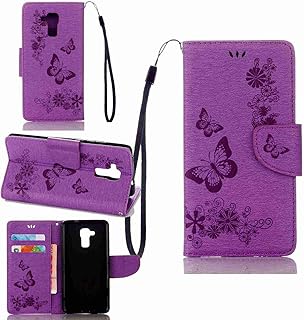pinlu Schutzhülle Für Huawei Honor 8 Handyhülle Hohe Qualität PU Ledertasche Brieftasche Mit Stand Function Innenschlitzen Design Groß Schmetterling Lila