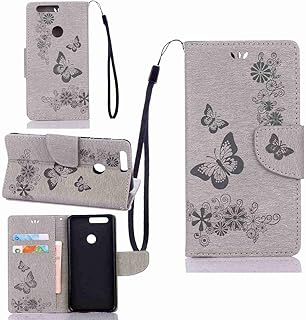 pinlu Schutzhülle Für Huawei Honor 8 Handyhülle Hohe Qualität PU Ledertasche Brieftasche Mit Stand Function Innenschlitzen Design Groß Schmetterling Grau