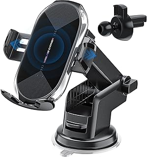 HonShoop Qi 10W Handy Autohalterung Handyhalterung Auto Mit Ladefunktion Automatischer Induktion Betrieb Schnelles Kabelloses Kfz Handyhalterung Lüftung & Saugnapf für iPhone/Samsung/Huawei (Silber)