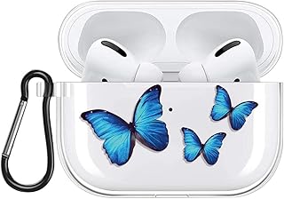 Pnakqil Schutzhülle Kompatiblel mit AirPods Pro Hülle Durchsichtig mit Motiv Stoßfeste Silikon Slim Case TPU Schutzhülle Robustes Premium Tragbar Transparent Case [Front LED Sichtbar], Schmetterling 2