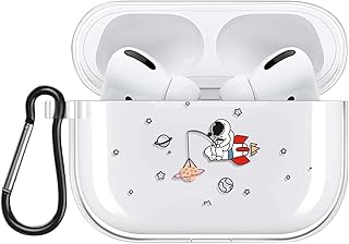 Pnakqil Schutzhülle Kompatiblel mit AirPods Pro Hülle Durchsichtig mit Motiv Stoßfeste Silikon Slim Case TPU Schutzhülle Robustes Premium Tragbar Transparent Case [Front LED Sichtbar], Astronaut