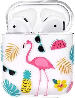 Oihxse Schutzhülle Kompatiblel für AirPods 1 & 2 Hülle,Slim Silikon Hülle PC Schlank Leicht AirPods Zubehör Schutzhülle Robustes aus Premium Tragbar Case für AirPods 2 und 1 Case-Flamingo