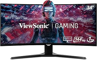 Viewsonic VX3418-2KPC 86,4 cm (34 Zoll) Curved Gaming Monitor (UWQHD, Adaptive Sync, 1 ms, 144 Hz, HDMI, DP, geringer Input Lag, Lautsprecher, höhenverstellbar) Schwarz