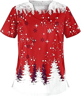 Ronony Krankenhaus Kurzkasack Schlupfhemd Weihnachten V-Neck Bluse Kurzarm Schlupfkasack Mischgewebe Kasack Damen Pflege mit Motiv Bunt Arzt Uniform Berufsbekleidung Krankenschwester Kleidung
