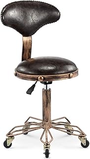 Calyvina Vintage Industrial Style Salon Hocker Höhenverstellbar Rollen-Dreh-Bürostuhl Massage Spa Hocker Stuhl mit Rückenlehne,Darkbrown,B